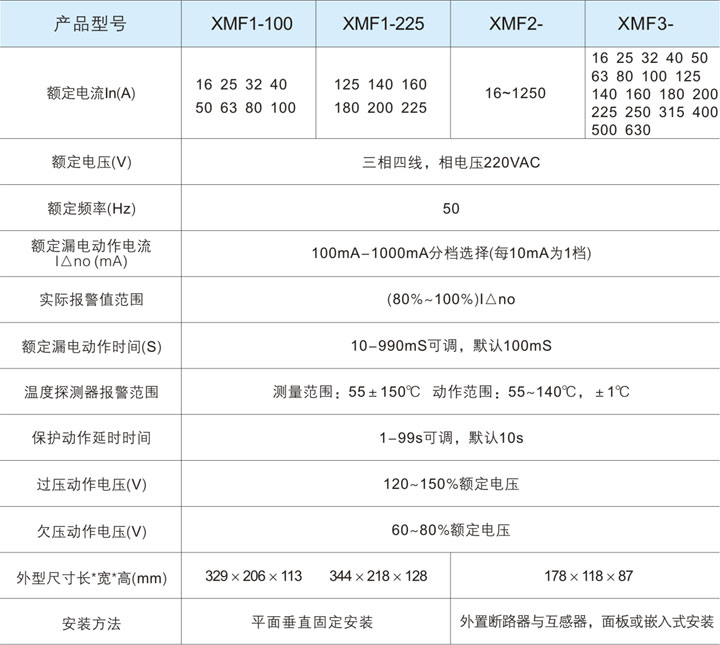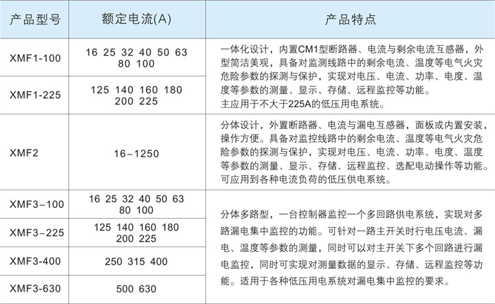 XMF系列產(chǎn)品規(guī)格及特點(diǎn)