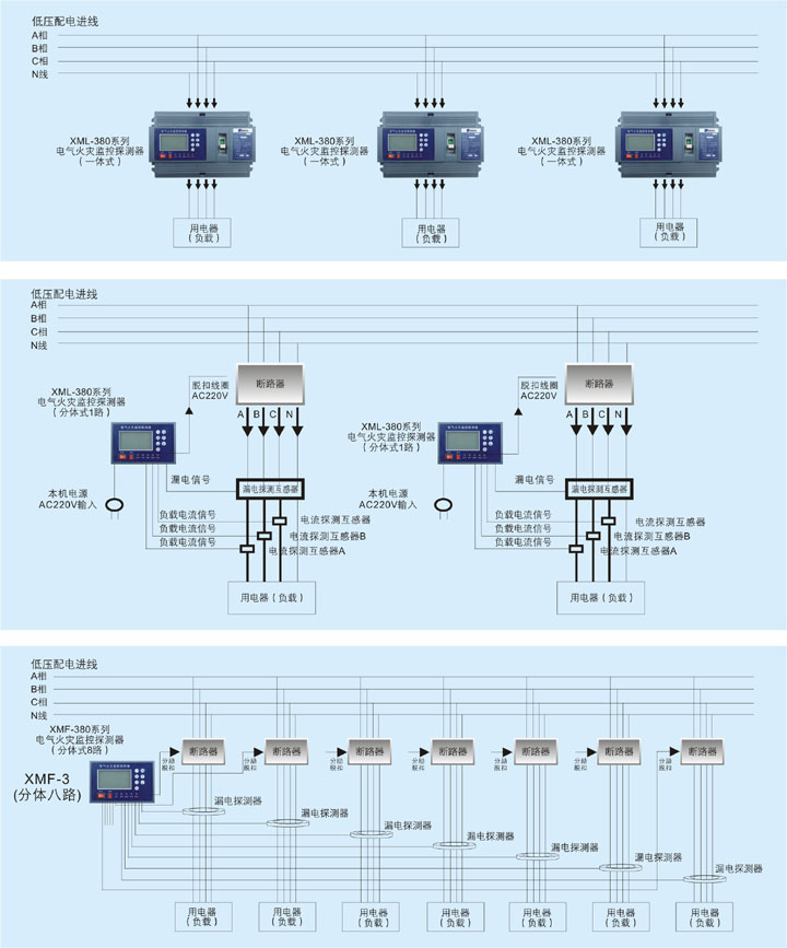 電氣火災(zāi)監(jiān)控探測器安裝示意圖(單相與三相兼容)
