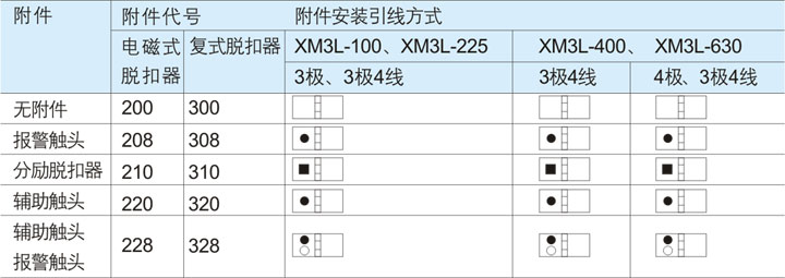 ◇ 訂貨時(shí)就注明產(chǎn)品型號(hào)、額定電流、內(nèi)部附件(見(jiàn)表)、極數(shù)、保護(hù)種類(配電保護(hù),電動(dòng)機(jī)保護(hù))、數(shù)量等,如未注明特殊接線方式,我公司統(tǒng)一按板前接線供貨。