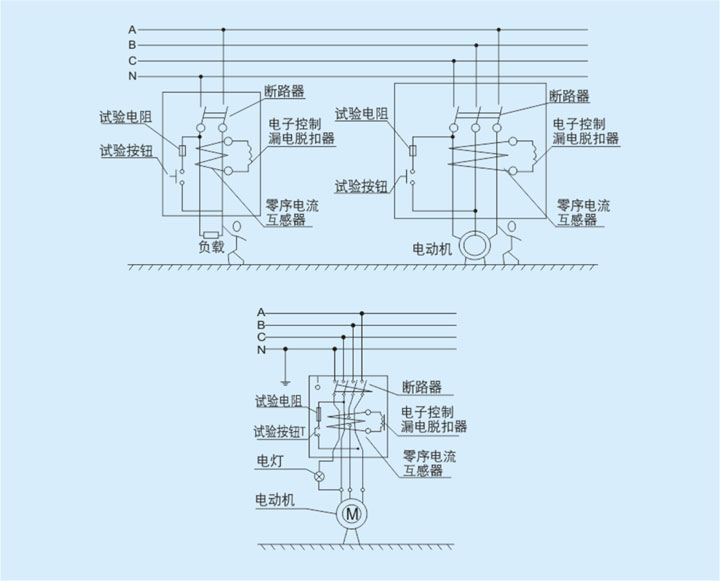 當(dāng)被保護(hù)電路中有漏電或人身觸電時(shí),只要剩余電流達(dá)到整定動(dòng)作電流值,零序互感器的二次繞組的輸出信號(hào)就觸發(fā)可控硅導(dǎo)通,并通過(guò)漏電脫扣器使漏電斷路器動(dòng)作,從而切斷電源起到漏電和觸電保護(hù)作用。