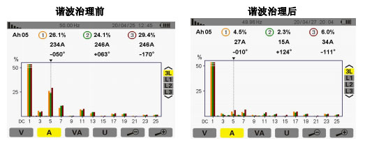 4.2 現場電能質量選型和制訂 首先,要保證功率因數要達到要求,諧波治理方案要能夠保障主要諧波吸收或抵 消目的的實現,要保障諧波治理設備投入使用后系統(tǒng)電路內的諧波量 對設備影響較??;其次,系統(tǒng)改進方案要保障裝置自身的安全性。動 力柜穩(wěn)定電流按照正常 30%的設計要求使用 400A 有源濾波器可以治 理設備的諧波. 這個安全性主要是指在系統(tǒng)當前存在的諧波電流、電壓的背景下,有 第三,需要設計方案的性價比,在可能的情況下盡量降低系統(tǒng) 造價,提高系統(tǒng)的實用性;