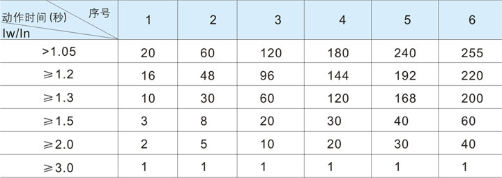 注:表中l(wèi)w為工作電流,ln為額定動作電流。