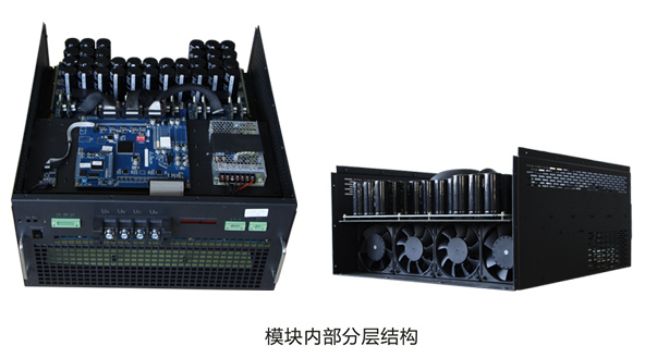 除風(fēng)扇外所有導(dǎo)電元件與外界隔離,適應(yīng)于粉塵、鹽堿、潮濕嚴(yán)重的惡劣場合。模塊內(nèi)部結(jié)構(gòu)示意圖如下: